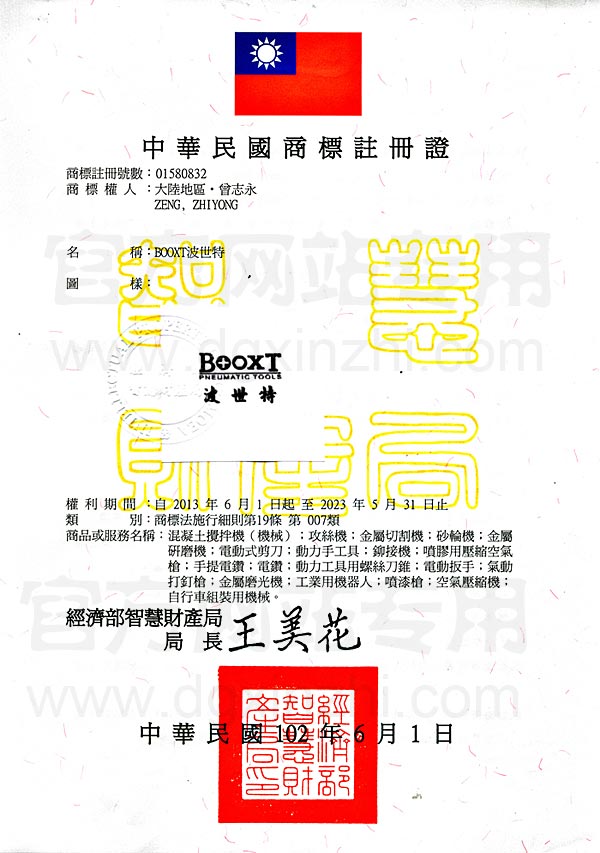 • BOOXT波世特商標注冊證